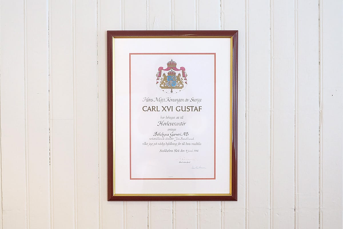 Gegründet wurde die Gerberei Böle 1899 von Oskar Sandlund. Über drei Generationen hinweg wurde das Wissen weitergegeben, vom Großvater zum Vater, vom Vater zum Sohn. Der dritte in dieser Reihe war Jan Sandlund, der die Gerberei und die kleine Manufaktur ab den 1970er-Jahren führte. 1996 erhielt Böle den Titel „Königlicher Hoflieferant“ – doch der Weg dorthin begann, wie so viele gute Geschichten, mit einem kleinen Zufall und einer beherzten Entscheidung.