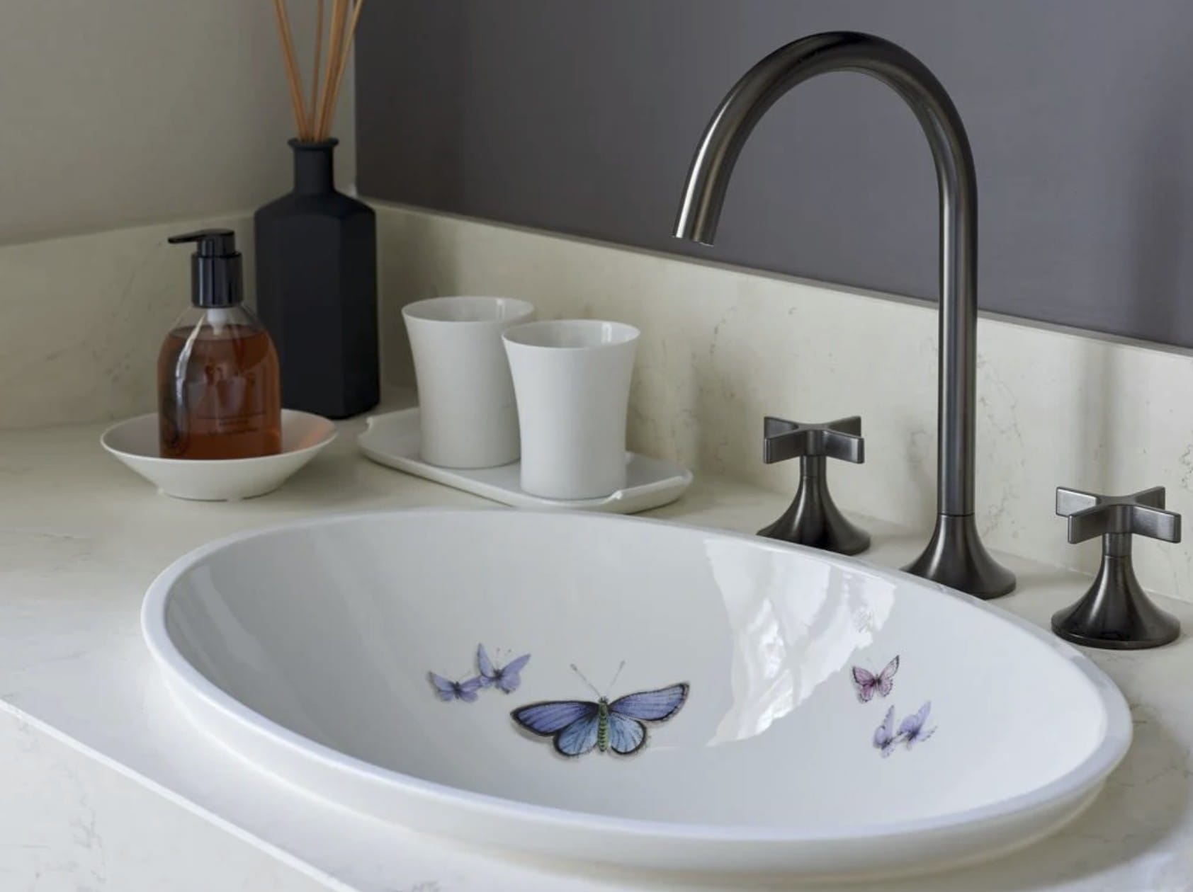 Feinste Handwerkskunst für das Zentrum des Badezimmers: Die königlich bayerische Porzellanmanufaktur Nymphenburg steht seit 1747 für kunstvolles Porzellan höchster Güte. Das handgefertigte Waschbecken Papilio aus feinem Bisquitporzellan ist ein echtes Statement-Stück – zeitlos, elegant und ein Highlight für jedes luxuriöse Badambiente. Ein royales Kunstwerk, das Funktionalität und Ästhetik perfekt vereint.