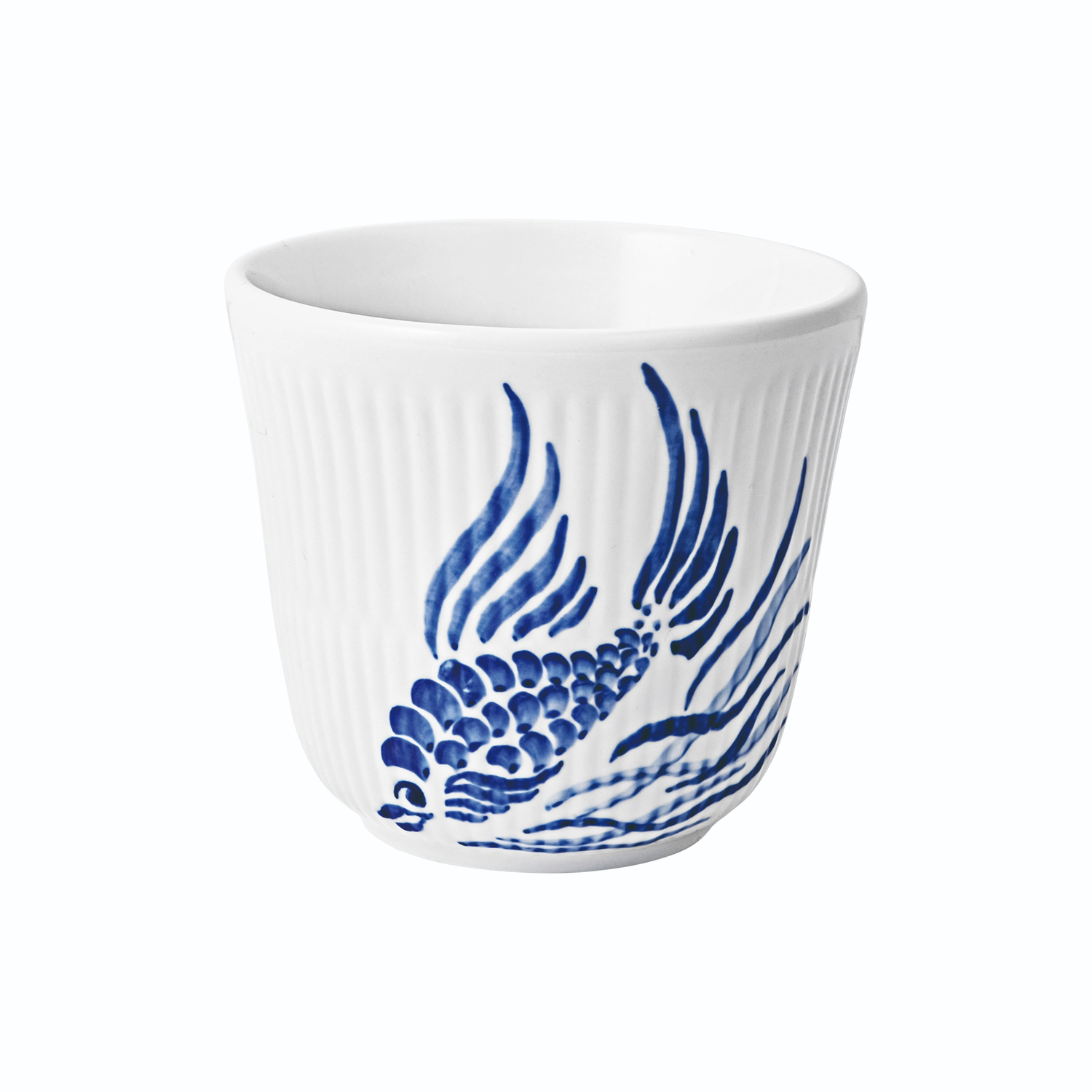 Die Jubiläumskollektion "Heritage Explored" und der Jubiläumsbecher zum 250-jährigen Bestehen der Manufaktur Royal Copenhagen, von Ihrer Majestät Königin Margrethe höchstpersönlich mit einem Fisch-Motiv bemalt © Royal Copenhagen